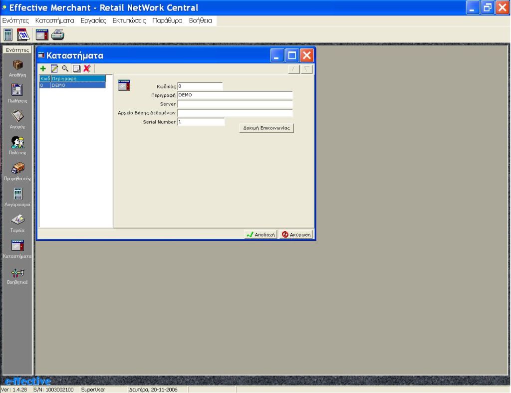 Περιγραφή: Κεντρική διαχείριση 4 καταστημάτων λιανικής.